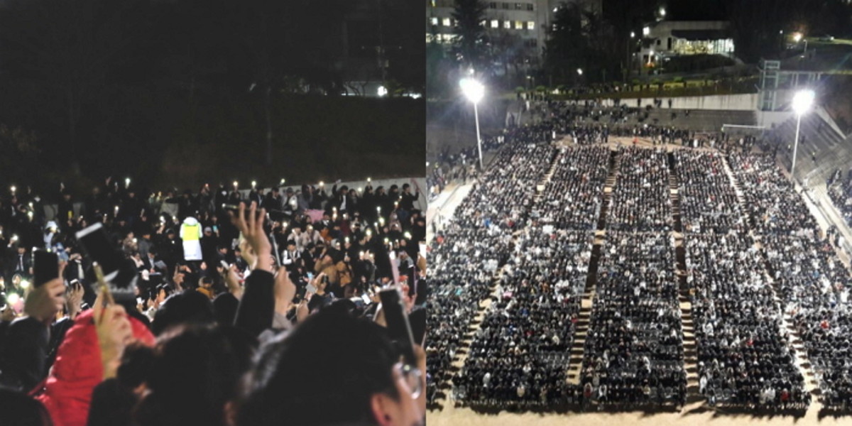 생명과도 같은 학점이 걸린 기말고사 기간임에도 4200명의 학생은 한데 모여 촛불을 들었다.