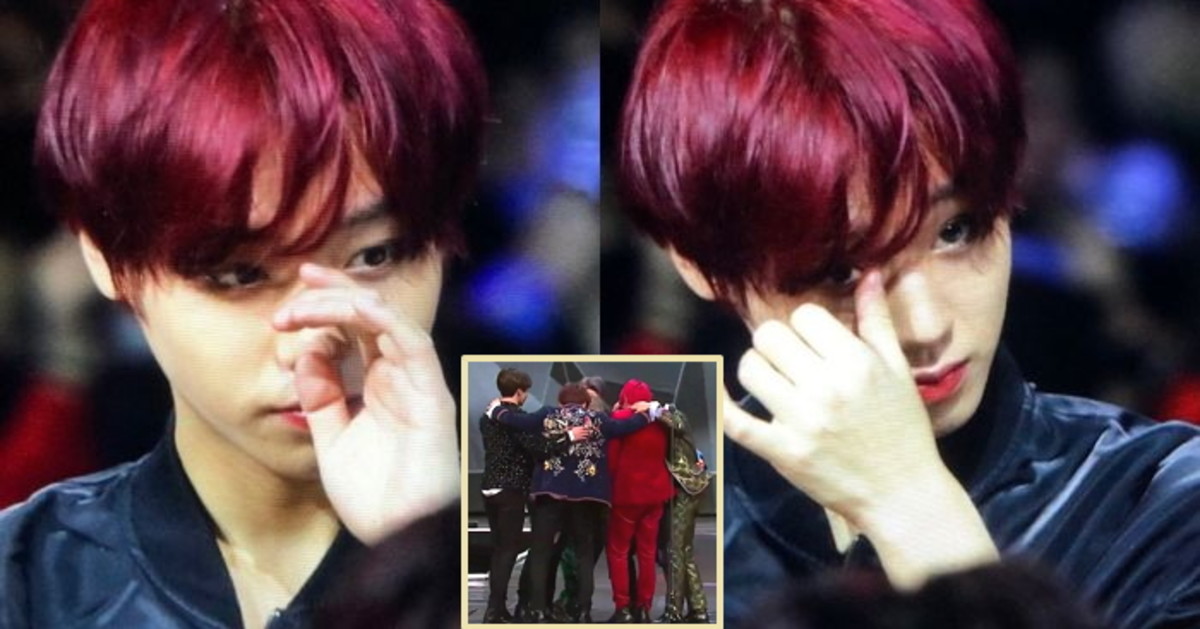 방탄소년단 멤버들이 눈물을 보이자 박지훈 역시 촉촉해진 눈가를 연신 닦아냈다.