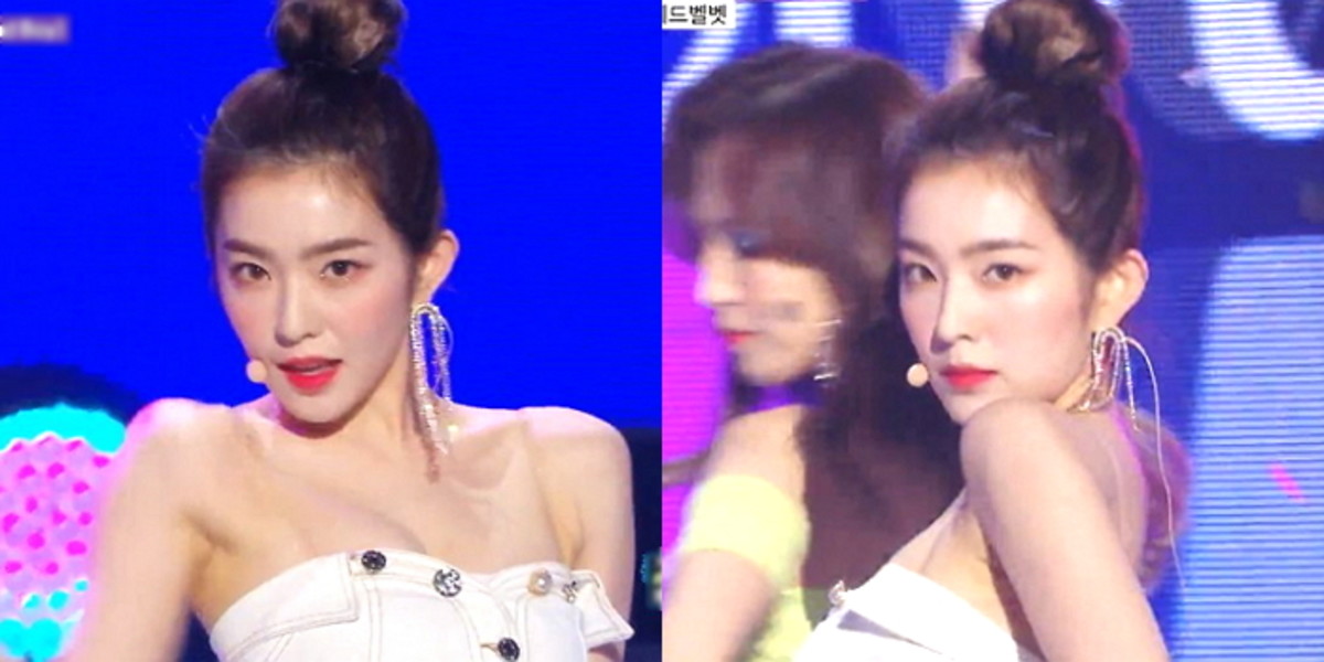 그중 흰색 튜브탑 의상을 입고 똥머리 헤어스타일 한 아이린의 비주얼은 보는 이의 시선을 단번에 집중시켰다.