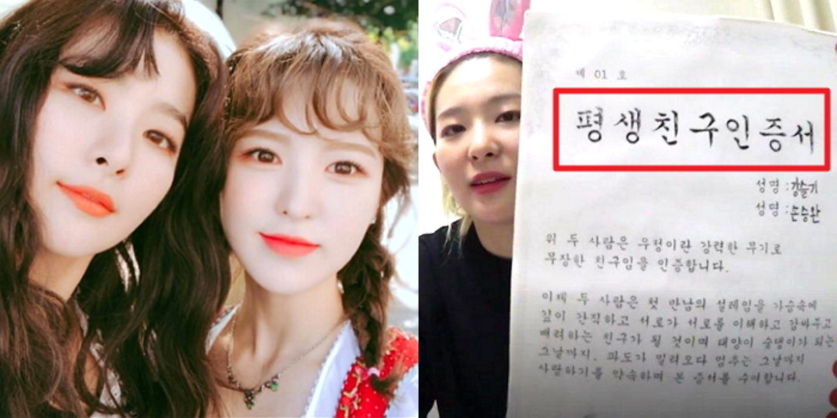 인증서에는 슬기의 본명인 '강슬기'와 웬디의 본명 '손승완'이 또박또박한 글씨로 적혀있다.
