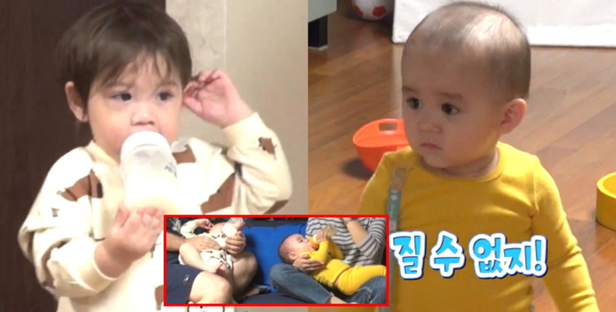 각각 샘 해밍턴과 부인의 무릎 위에 안정적으로 누운 둘은 마지막 분유 한 방울이 끝날 때까지 서로를 응시해 큰 웃음을 선물했다.