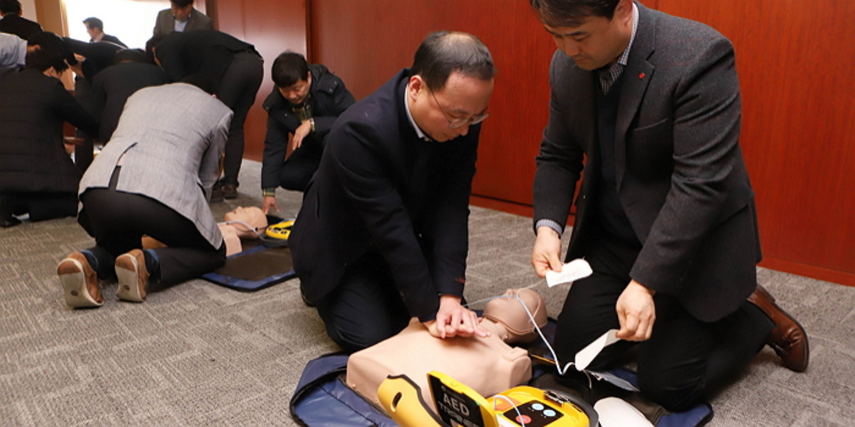 [인사이트] 이하린 기자 = 롯데마트가 임원들을 대상으로 자동심장충격기(AED) 및 심폐소생술 교육을 진행했다.