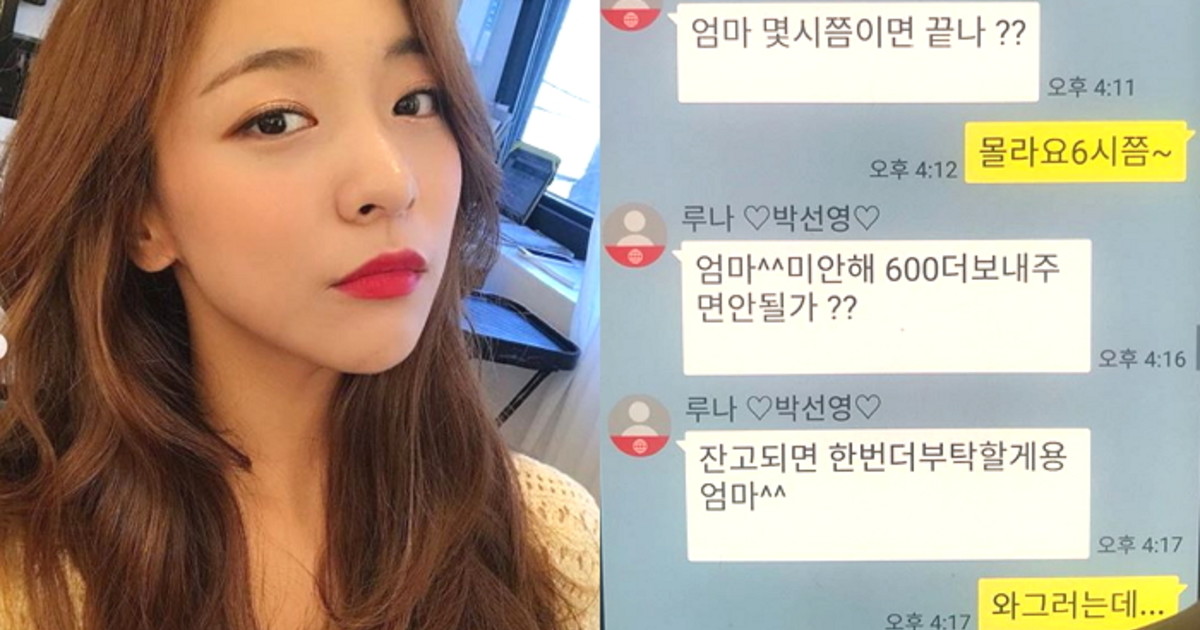 루나로 사칭한 인물은 "엄마 잔고 여유 되면 매니저한테 대신 송금해줄래? 지금 연말이라 행사하느라 바빠서 정신없어서 그래"라며 본인이 진짜 루나인 양 행세했다.