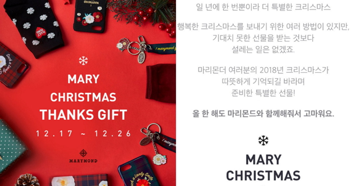 마리몬드의 마리 크리스마스 땡스 기프트 이벤트에 대한 자세한 내용은 마리몬드 홈페이지를 통해 확인할 수 있다.