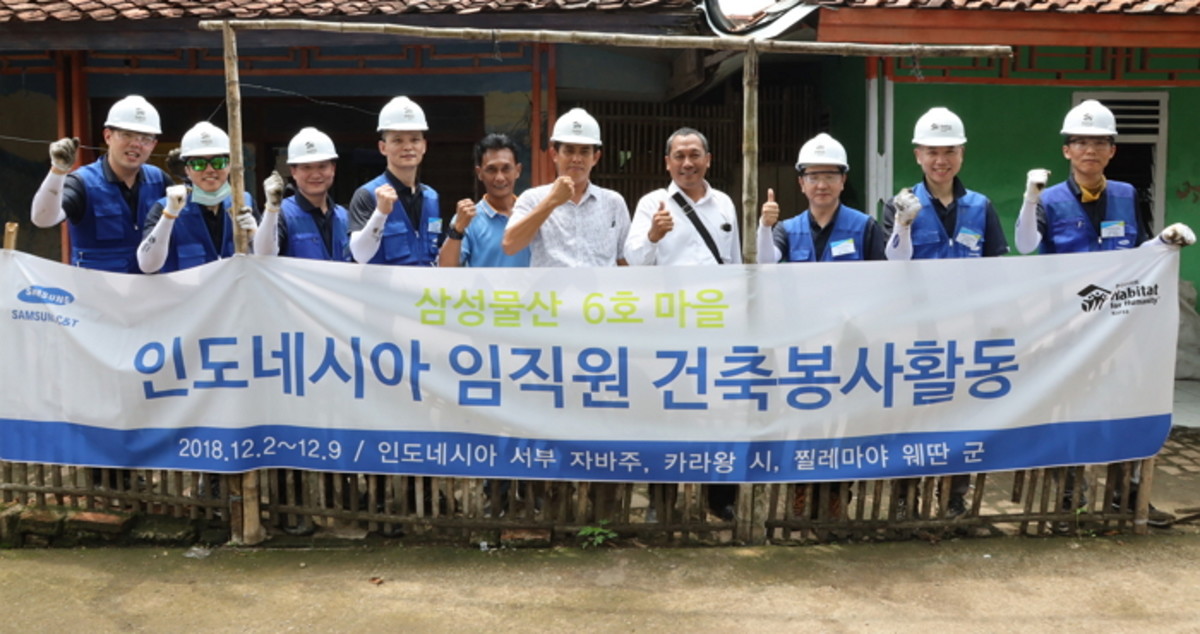 18일 삼성물산 건설부문은 한국해비타트와 손잡고 인도와 인도네시아에서 건설업의 특성을 살린 글로벌 주거환경 개선 사업 '삼성마을(Samsung Village)' 5호와 6호 조성활동을 진행했다고 밝혔다.