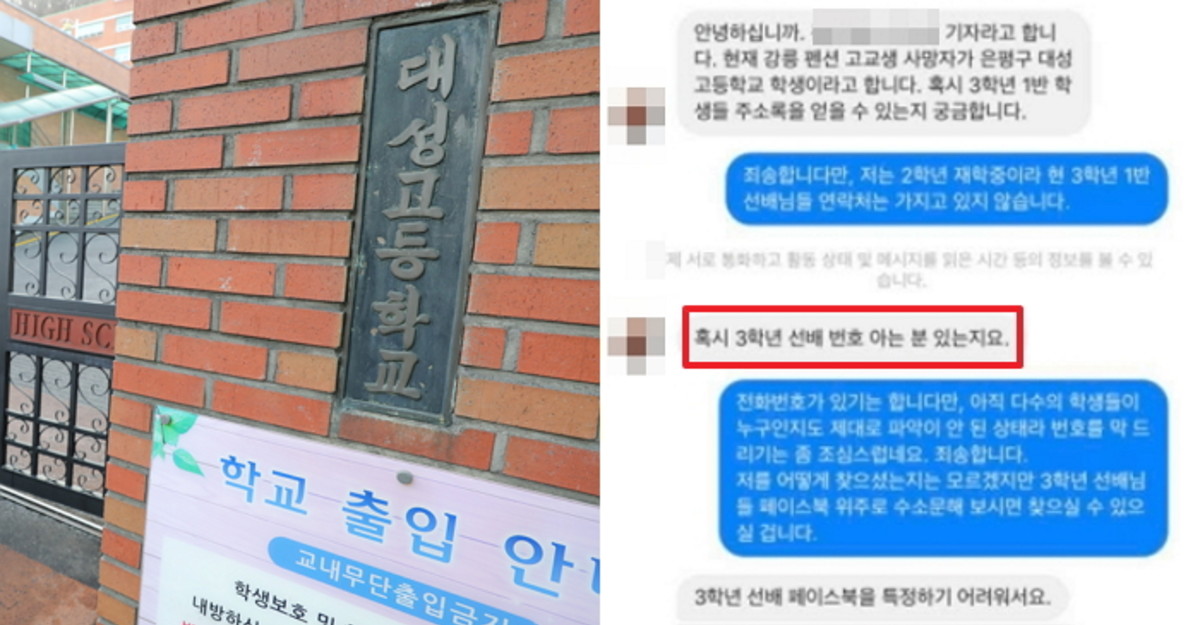 학생들이 공개한 사진에 따르면 기자들은 "3학년 선배 중 아는 사람이 있냐"며 연락처를 요구했다.