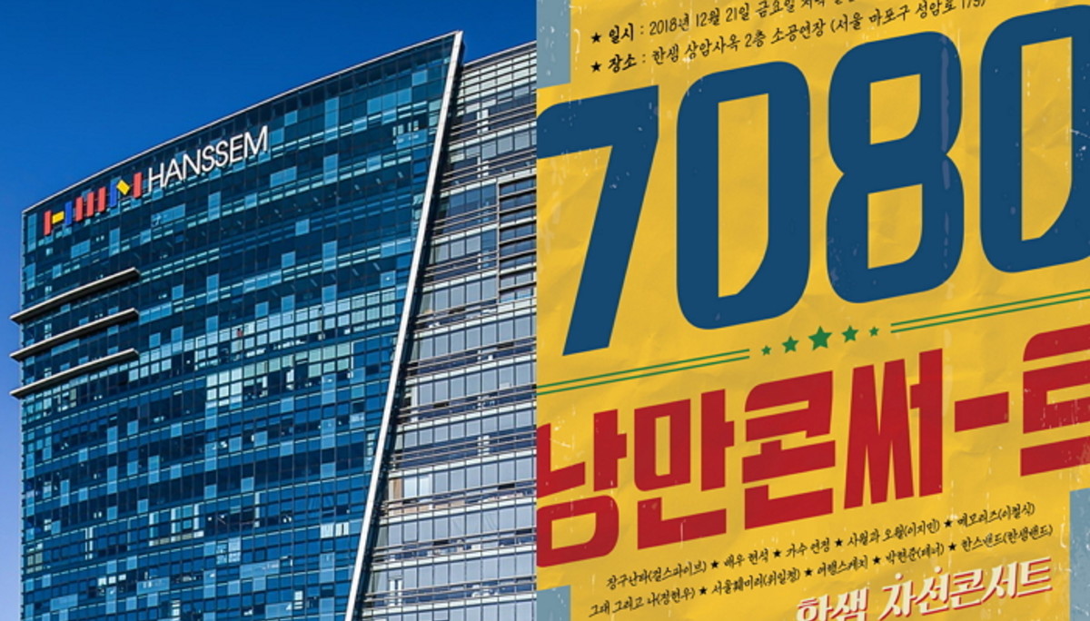 19일 (주)한샘에 따르면 지역민들과 문화행사를 즐기며 뜻깊은 연말을 보내고자 오는 21일 저녁 7시 한샘상암사옥 대강당에서 '7080 낭만콘서트'를 연다.