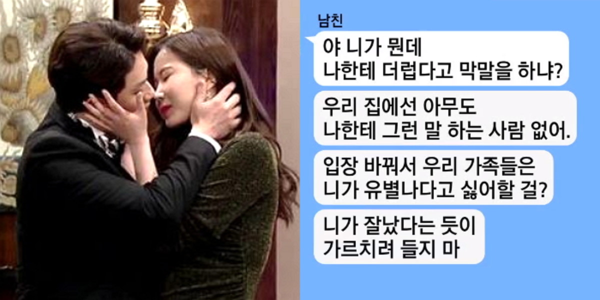 남자친구는 여성에게 유난스럽다며 "우리 가족들은 네가 유별나다고 싫어할걸? 잘났다는 듯이 가르치려 들지 마"라고 화를 냈다.
