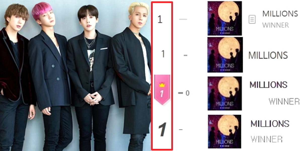 지난 19일 위너의 새 디지털 싱글 'MILLIONS'(밀리언즈)가 발매 직후 국내 주요 음원 차트 1위를 휩쓸고 있다.