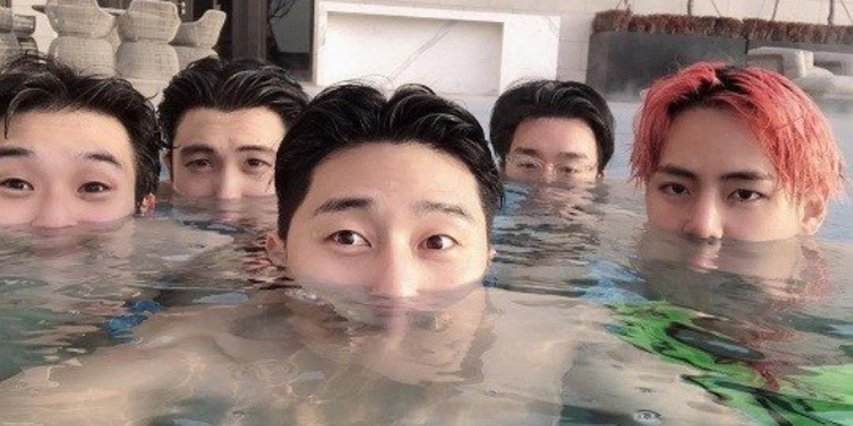 공개된 사진 속에는 따뜻한 물속에서 잠수를 하고 있는 박서준, 뷔, 박형식, 최우식 등이 보인다.