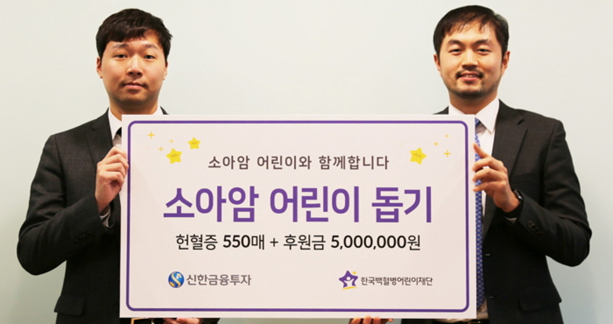 한편 신한금융투자는 지난 2017년부터 한국백혈병어린이재단을 통해 소아암 치료 중인 어린이에게 헌혈증을 지원하고 있다.