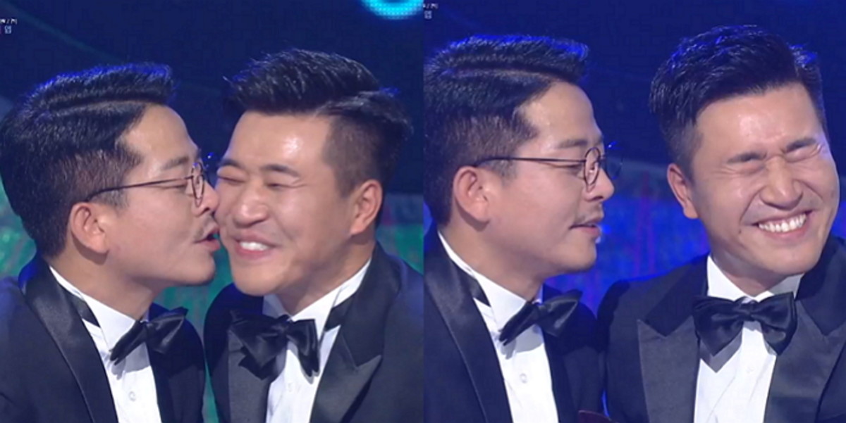 [인사이트] 김소영 기자 = '1박2일'의 히로인 김준호와 김종민이 베스트커플상을 수상하고 우정의 뽀뽀를 했다.