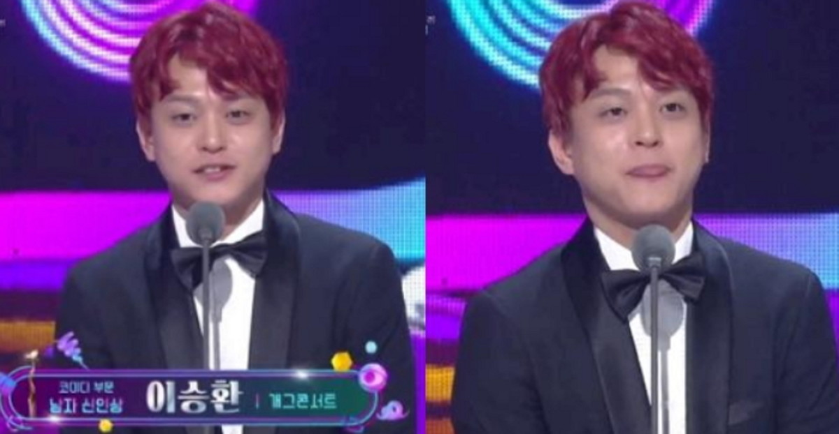 이날 남자 신인상의 영광은 '개그콘서트'에서 지드래곤을 패러디한 연기로 사랑받는 개그맨 이승환에게 돌아갔다.