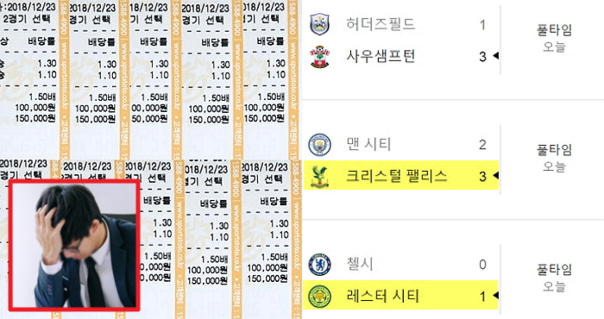 예상치 못한 두 경기의 결과로 해당 스포츠토토 이용자는 배팅 금액 전부를 날리게 됐다. 낮은 배당률로 안전한 배팅을 시도했지만, 이마저도 뜻대로 되지 않은 것이다.