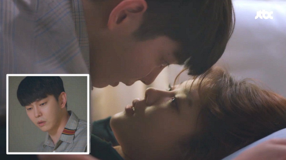 당황한 장선결은 길오솔의 정체를 숨겨주기 위해 다급히 그녀가 누워있는 소파로 몸을 던졌다.