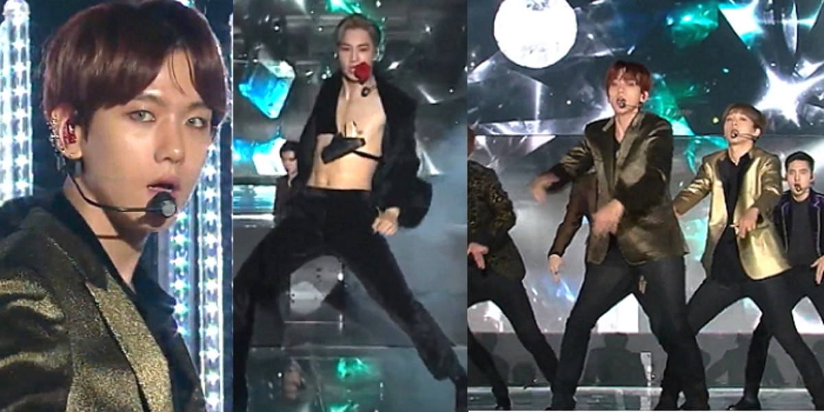 먼저 카이는 재킷만 입은 채 장미꽃을 입에 물고 무대에 올라 화려한 독무를 펼쳤다.