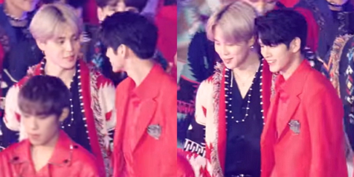 이어 옹성우는 지민의 엉덩이를 가볍게 툭툭 치며 반가움을 드러냈다. 지민 또한 웃으면서 대화를 이어갔다.