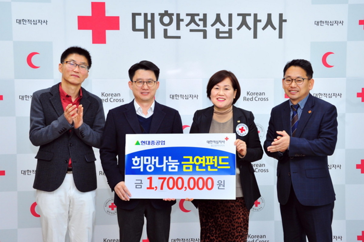 현대중공업은 26일 대한적십자사 울산광역시지사에서 '금연 기금 전달식'을 갖고, 지난 3월부터 9월까지 6개월간 진행한 '금연 클리닉'을 통해 마련한 '금연 기금' 170만원을 기탁했다고 밝혔다.