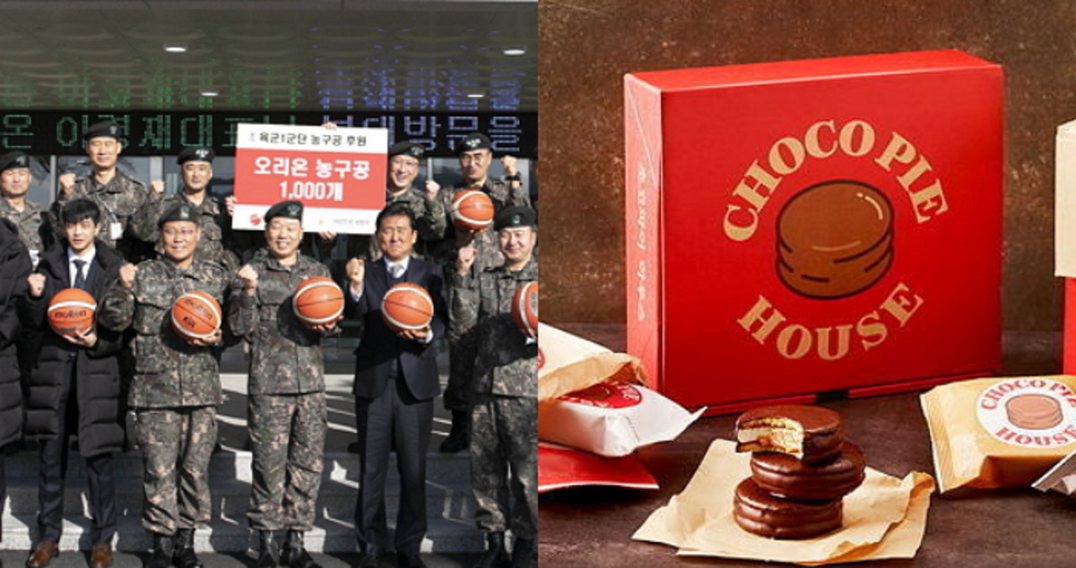 지난 2월 오리온은 국방부와 '국군장병 지원 협약'을 맺고 국군 신병 교육대 훈련병들에게 국군을 응원하는 디자인이 적용된 특별 초코파이 총 11만 세트를 후원했다.