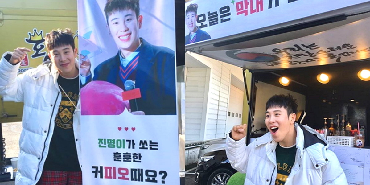 또 그 옆에는 "진명이가 쏘는 훈훈한 커피오때요? 맛있게 드시고 힘내서 촬영하세요"라는 귀여운 응원 글도 게재돼있다.