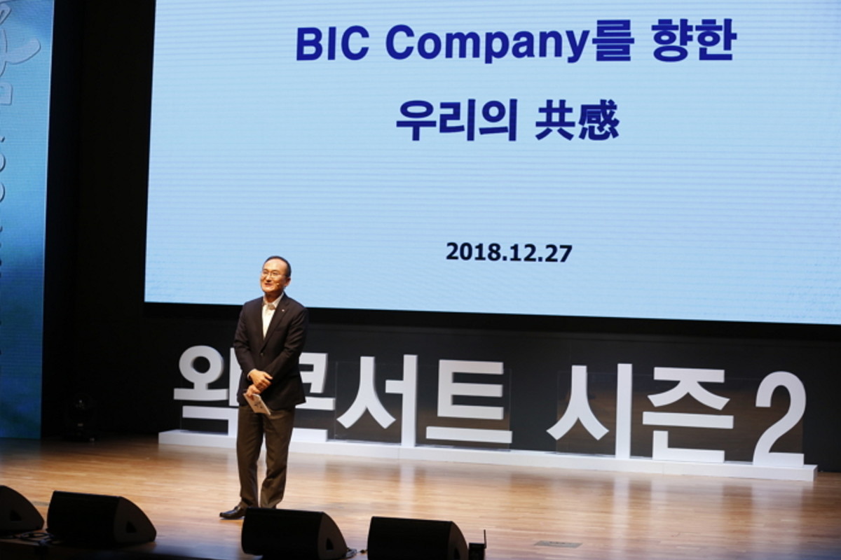 SK하이닉스는 27일 이천캠퍼스에서 이석희 사장(CEO)과 임직원 400여명이 참석한 가운데 '왁(자지껄) 콘서트'를 열고, ▲엔지니어 정년 이후 근무 가능한 제도 도입 ▲협업 강화를 위한 평가제도 개선등을 골자로 하는 'CEO 공감 경영 선언'을 발표했다.