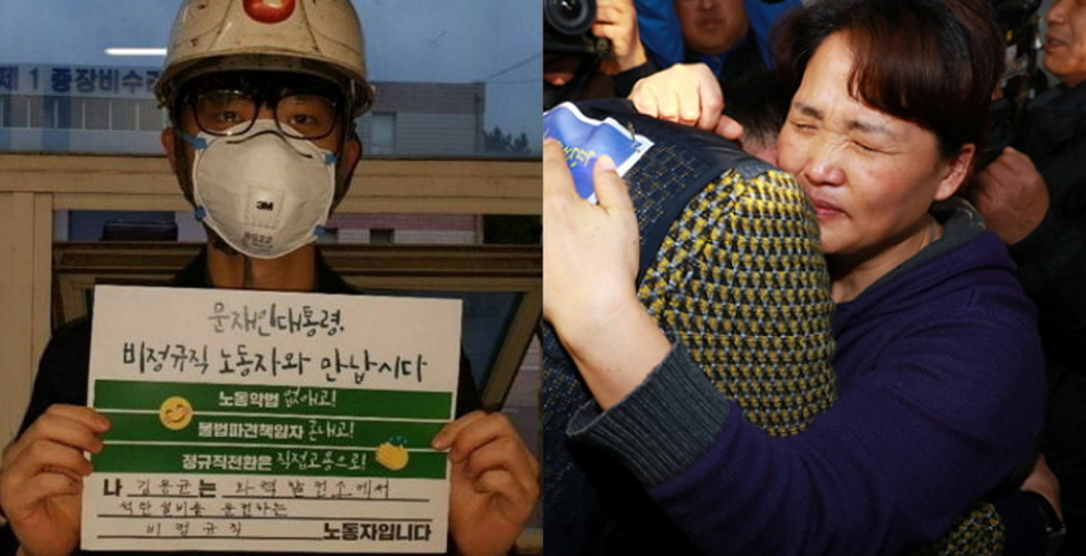 컨베이어 벨트에 끼여 목숨을 잃은 故 김용균 씨의 어머니가 산업안전보건법(산안법) 개정안이 국회 본회의를 통과한 것을 보고 남긴 소감이다.