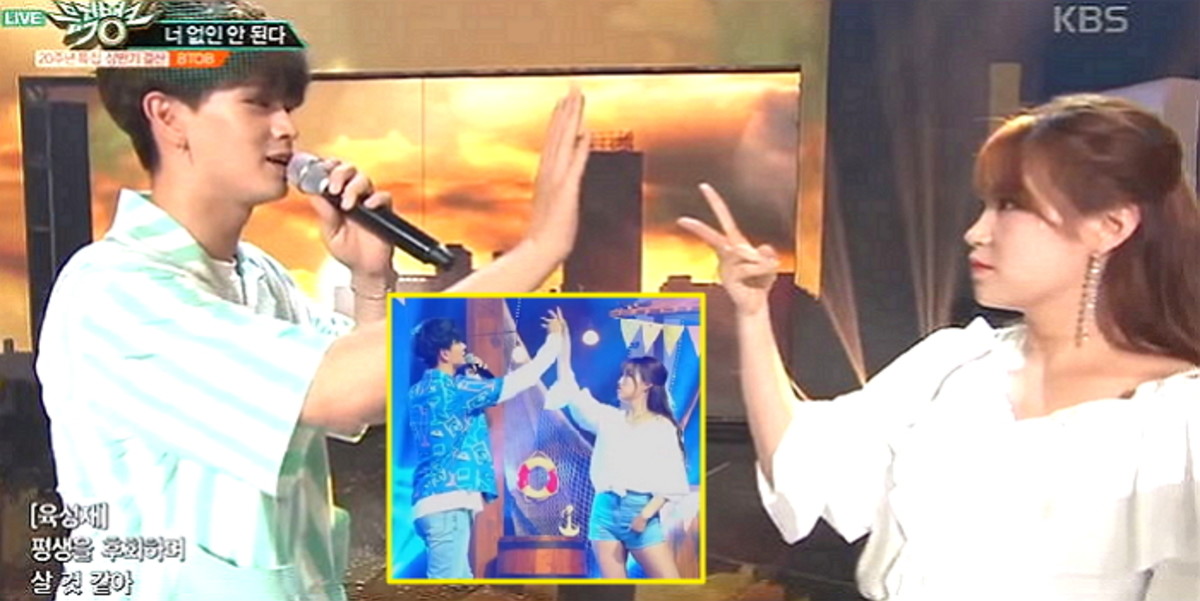 하지만 육성재는 "평생을 후회하며 살 것 같아" 부분에서 백댄서와 손을 마주하는 안무를 선보이던 중 꾹 눌려왔던 장난기를 표출하고 말았다.
