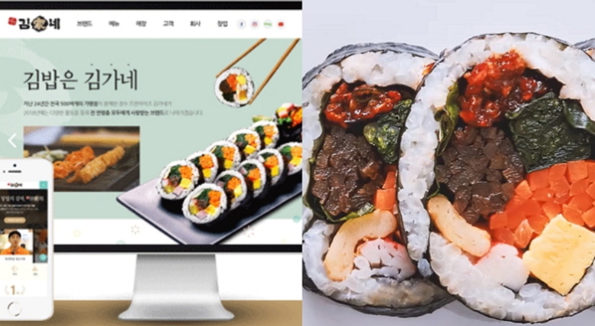 리뉴얼된 홈페이지는 '500호 가맹점', '7억 줄 이상 김밥 판매' 등의 수치를 사용자들이 쉽게 볼 수 있도록 했다.