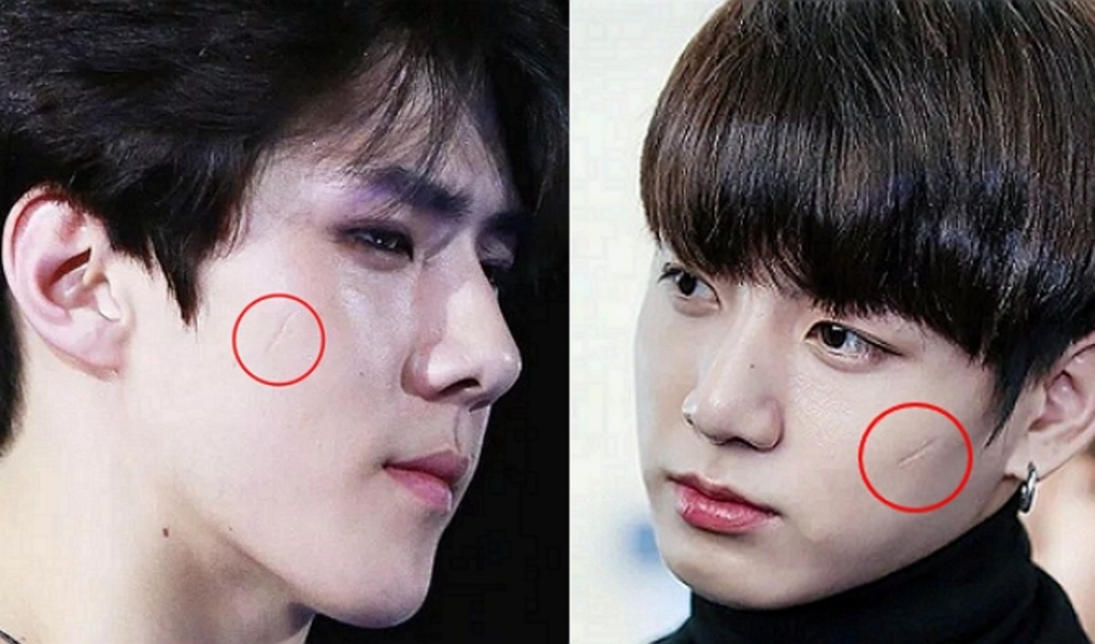 방탄소년단 정국이 왼쪽 볼에 상처가 있다면 엑소 세훈은 오른쪽 볼에 상처가 있다.