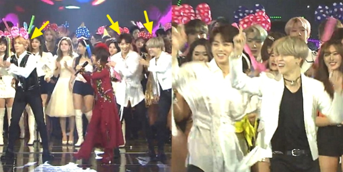 특히 방탄소년단은 김연자 뒤에서 완벽한 칼군무를 보여줘 놀라움을 자아냈다.