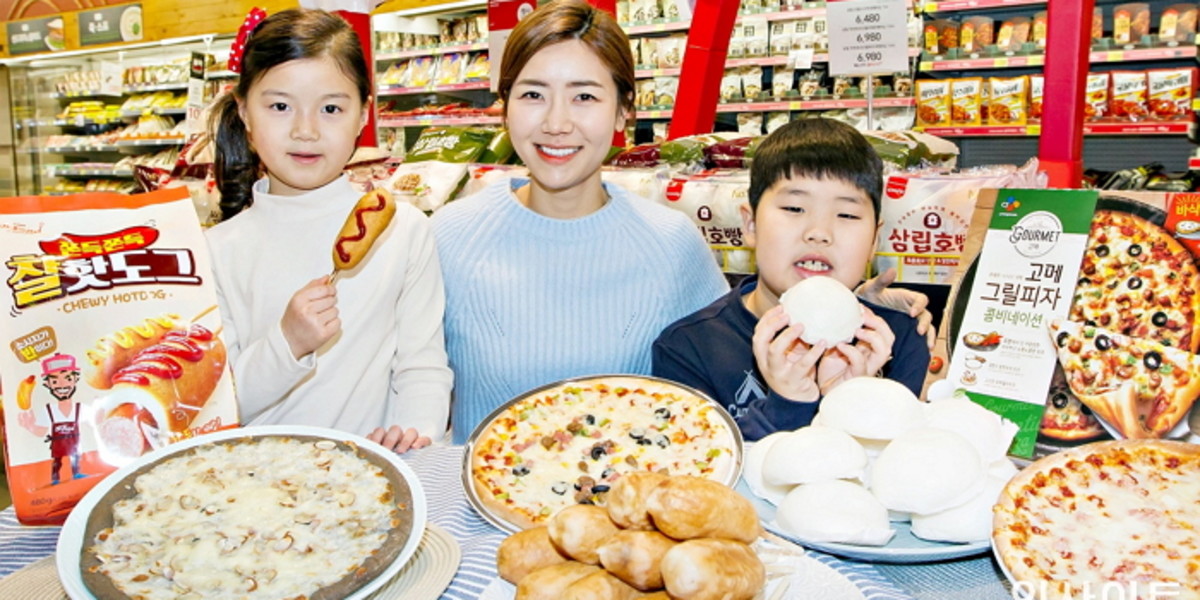 쫀득쫀득 찰핫도그(80g)는 6개 묶음이 6,990원, CJ 고메 그릴 피자 콤비네이션(415g)은 5,990원이다.