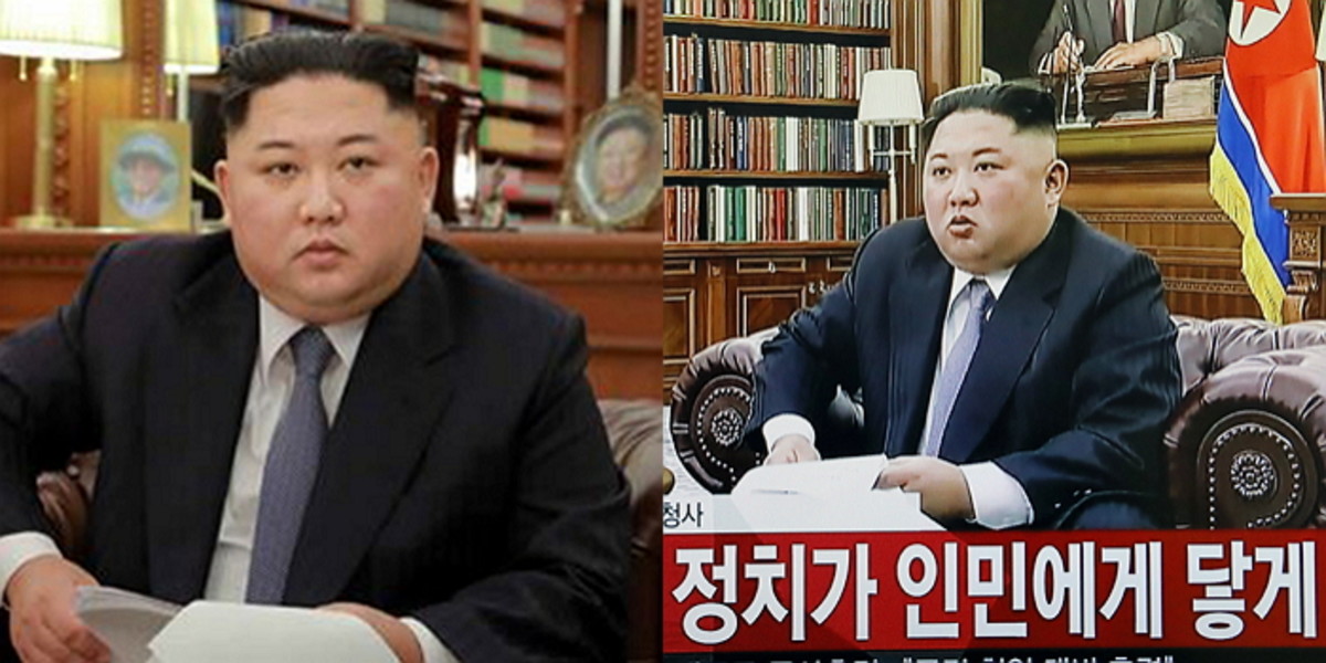 녹화중계로 발표한 이번 신년사에서 김 위원장은 그간 단상에서 발표하던 것과 달리 이례적으로 집무실 내부 소파에 앉아 신년사를 전했다.
