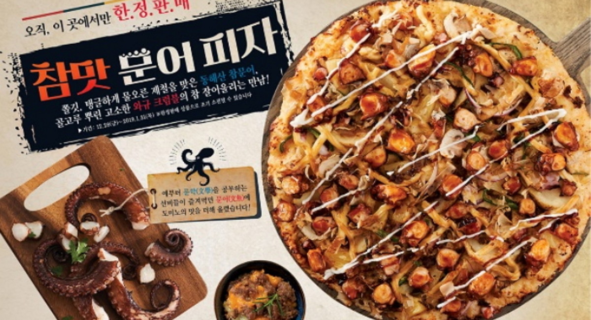 도미노피자는 국내산 문어와 와규 크럼블, 가쓰오부시 등이 어우러진 신제품 '참맛 문어피자'를 출시하고 다음달 31일까지 영남·광주 지역 총 20개 매장에서 한정 판매한다.