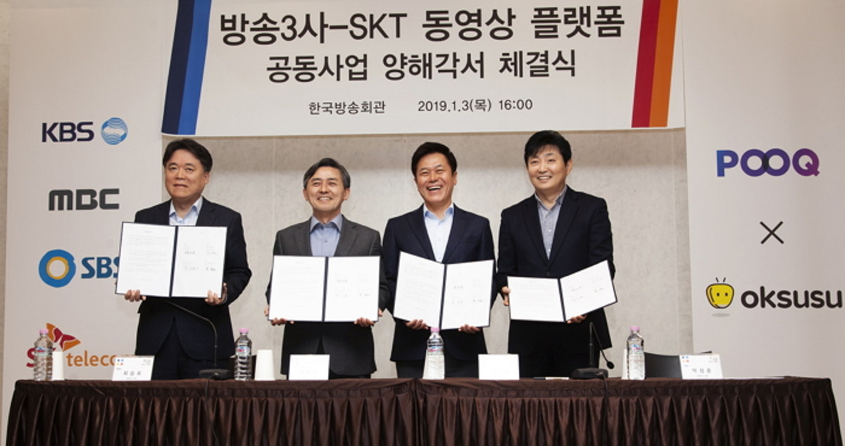 지난 3일 SK텔레콤은 한국방송회관에서 KBS·MBC·SBS 등 지상파 3사와 함께 동영상 스트리밍 서비스(OTT) 협력에 대한 양해각서를 체결했다.