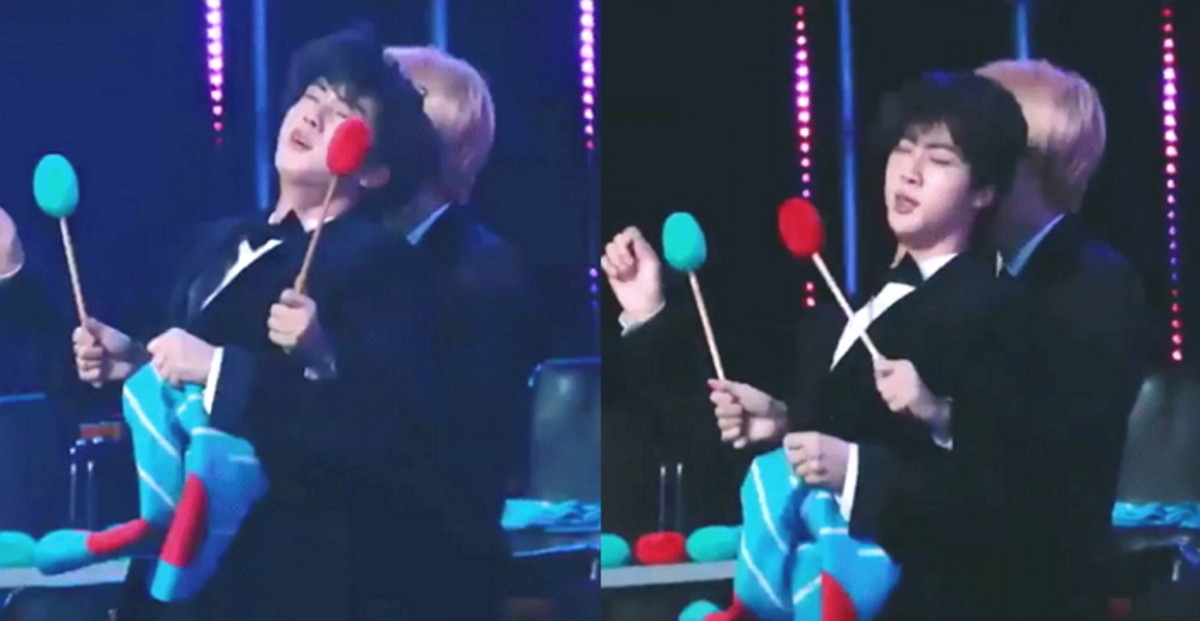 심지어 진은 뷔가 들고 있는 곤봉에 얼굴을 두 차례 맞았지만, 흥을 멈출 순 없었다.
