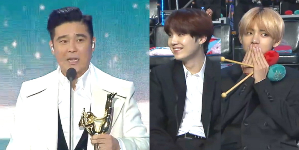 유쾌한 임창정의 수상소감을 객석에서 듣고 있던 방탄소년단의 슈가와 뷔도 폭소했다.