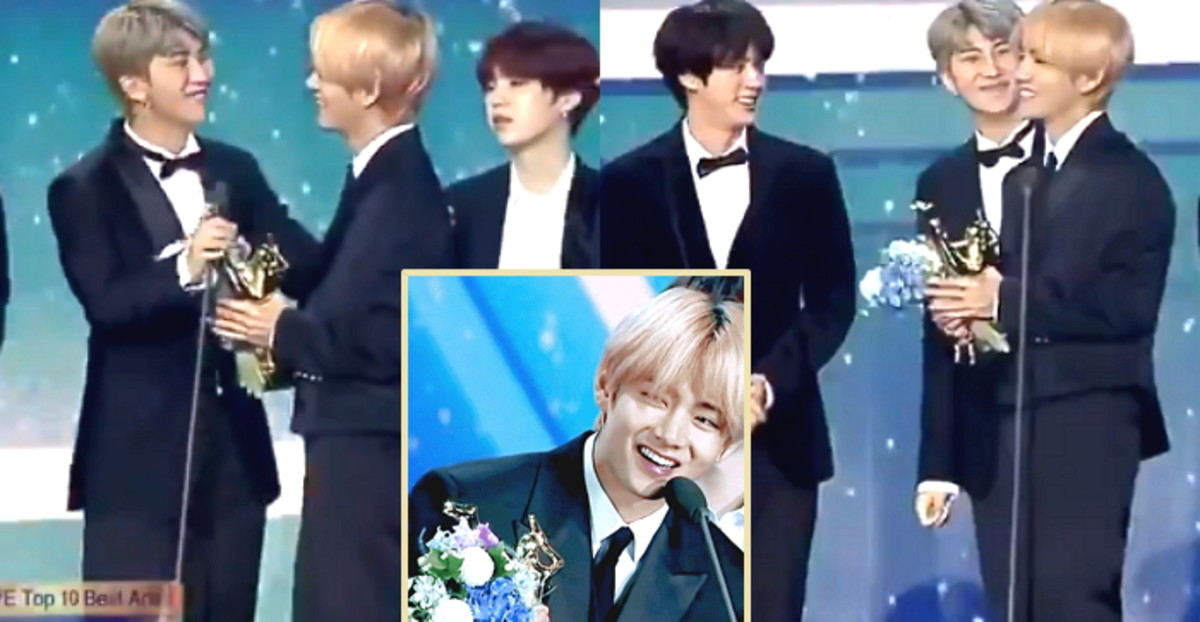 수상 소감을 위해 마이크 앞에 선 RM은 "V 라이브 수상이니까 우리 뷔(V)씨가 얘기해 주실 거다"라며 수상소감자로 뷔를 지목했다.