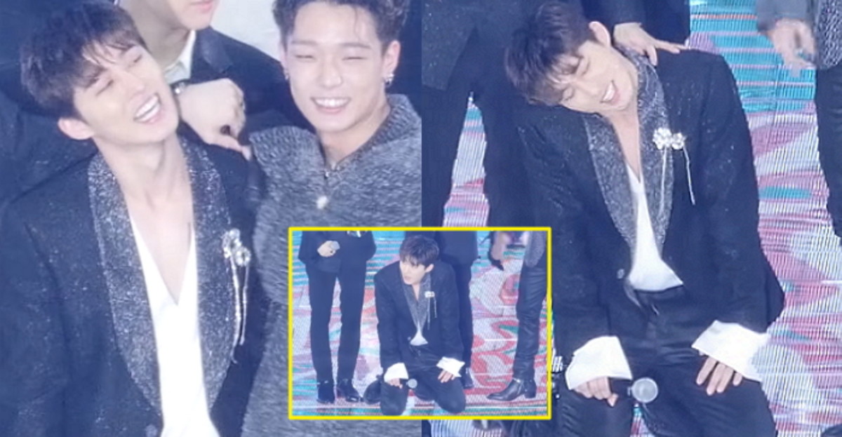 멤버들과 행복한 순간을 만끽하던 비아이는 급기야 다리에 힘이 풀렸는지 풀썩 주저앉아 버렸다.