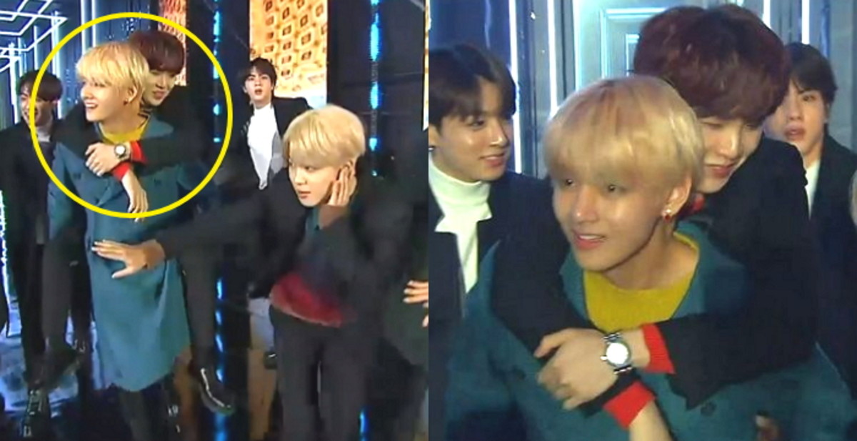 방탄소년단의 뷔는 팀 내 둘째인 슈가를 등에 업고 씩씩하게 무대 중앙으로 걸음을 옮겼다.