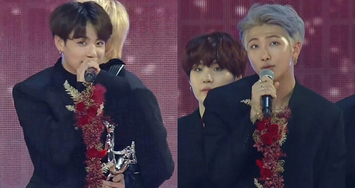 RM은 "저희가 수식어에 걸맞게 더 열심히 노력하면 과분하게 느껴지는 수식어도 팀 이름에 어울릴 거라 생각한다. 정말 감사하다"고 진심 어린 수상소감을 전했다.