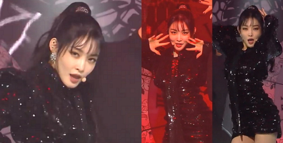 청하는 무대 중간중간에 섹시한 표정 연기도 함께 선보이며 프로 가수의 진면목을 여과 없이 보여줬다.