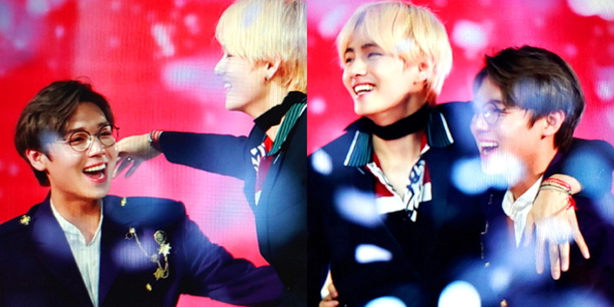 뷔는 무대를 지나가던 박지훈을 발견하고 환하게 웃으며 두 팔을 벌렸다. 박지훈 또한 뷔를 보자마자 한 걸음에 달려가 그의 품에 쏙 안겼다.