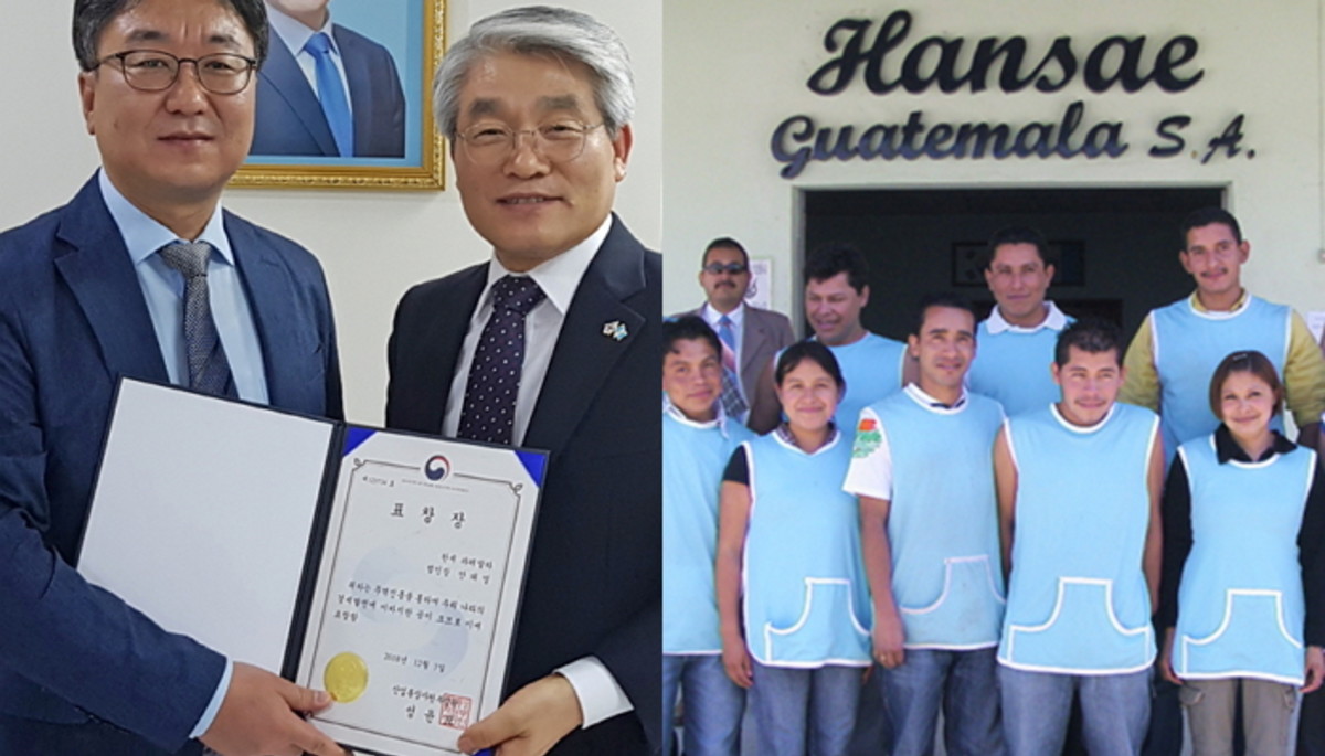 홍석화 주 과테말라대사가 직접 표창 수여하며 한세실업에 감사의 뜻 전해