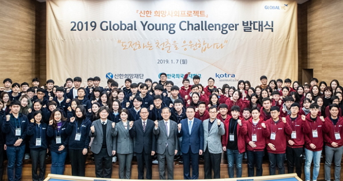 7일 신한희망재단은 경기도 용인시에 위치한 한국외대 글로벌캠퍼스에서 한국외국어대학교, 대한무역투자진흥공사 및 '청년 해외취업 지원 사업' 최종 합격자 100명과 함께 '글로벌 영 챌린지(Global Young Challenger) 발대식'을 개최했다고 밝혔다.