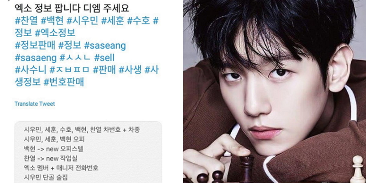 지난 5일 백현은 트위터에서 엑소 멤버들의 개인 정보로 수익을 창출하는 한 이용자를 발견했다.