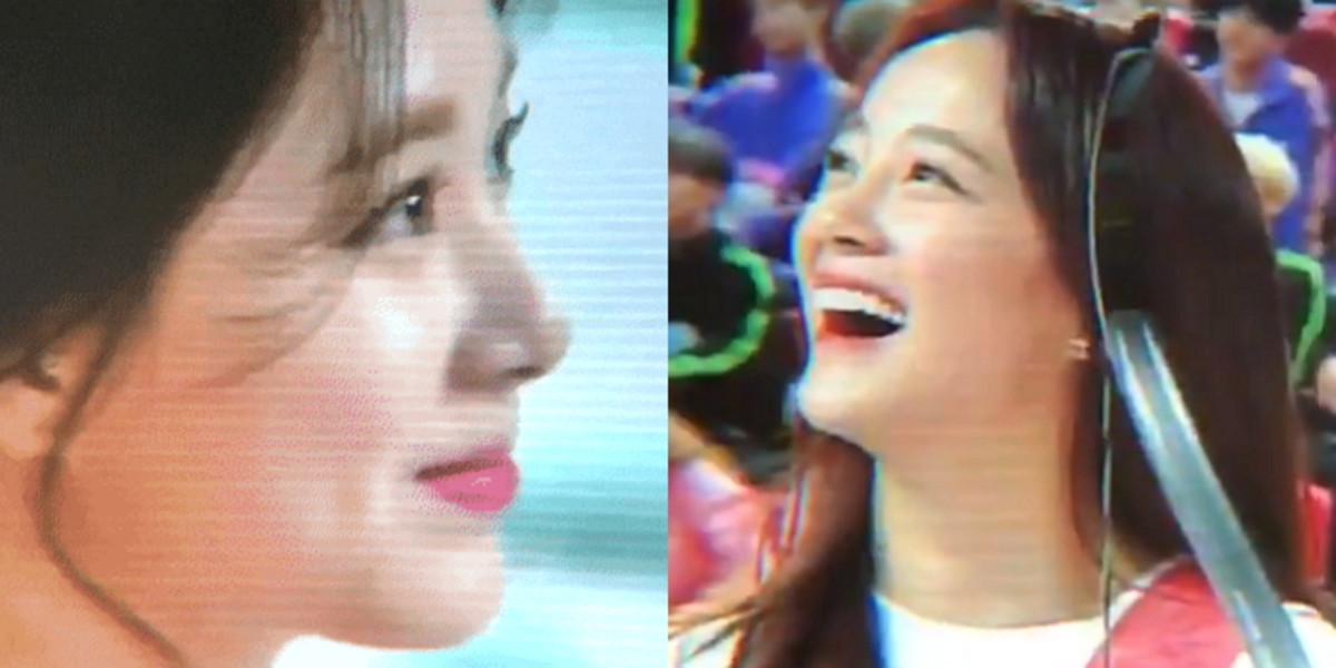 쯔위의 얼굴만 가득히 전광판에 잡히자 팬들은 환호성을 내질렀고, 상대편 김세정 역시 푹 빠진 듯 시선을 떼지 못했다.
