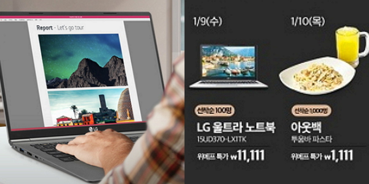 8일 '11데이'를 진행 중인 위메프는 오는 9일 이벤트 품목으로 LG 울트라 노트북을 내놓겠다고 밝혔다.