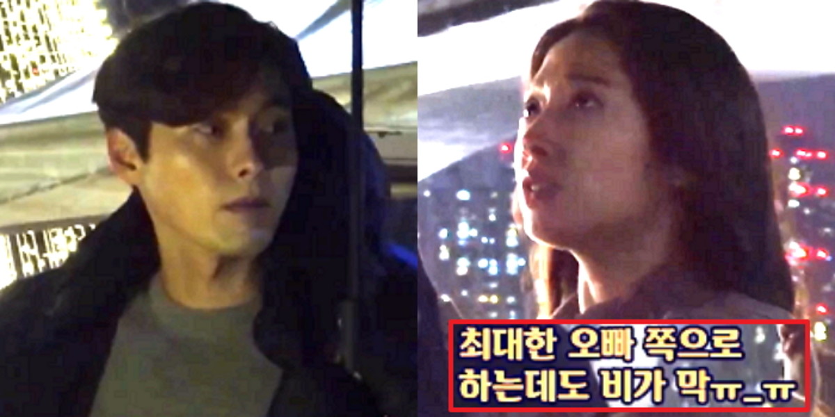 잠시 제작진이 정비를 하는 사이 박신혜는 계속 현빈에게 우산을 씌워주고 있었다.
