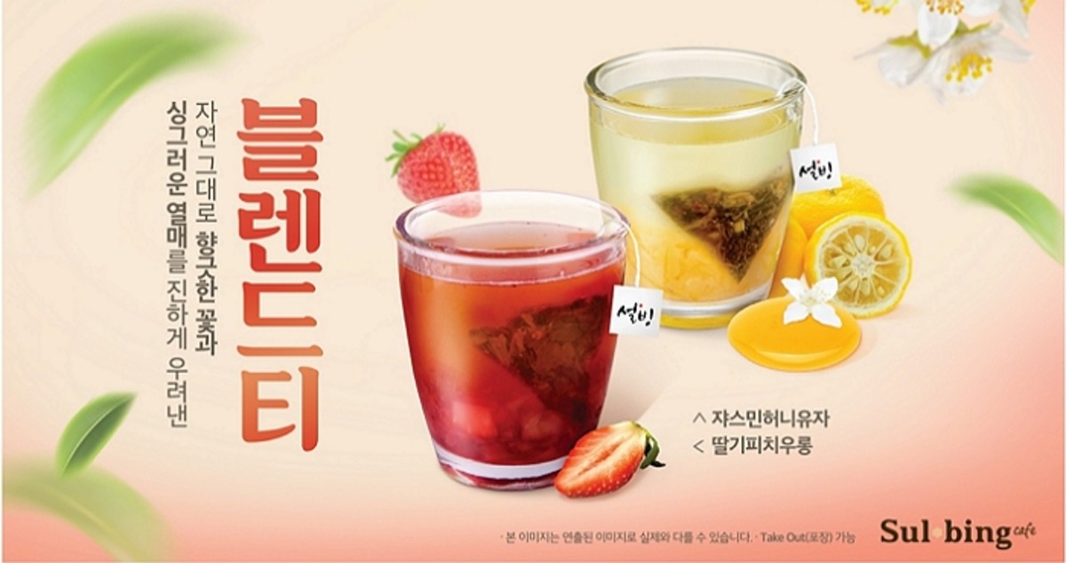 9일 설빙은 자스민허니유자, 딸기피치우롱으로 구성된 '블렌드티' 2종을 출시한다고 밝혔다.