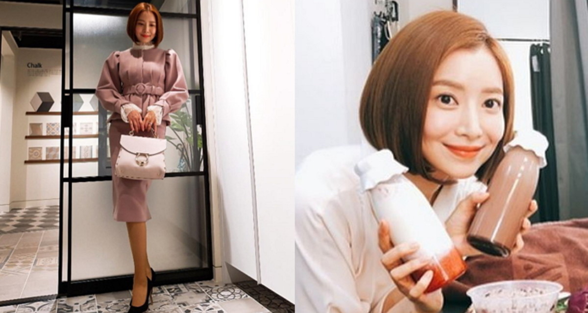 공개된 사진 속에는 윤세아가 분홍빛 투피스를 입고 우아한 포즈를 취하고 있다.